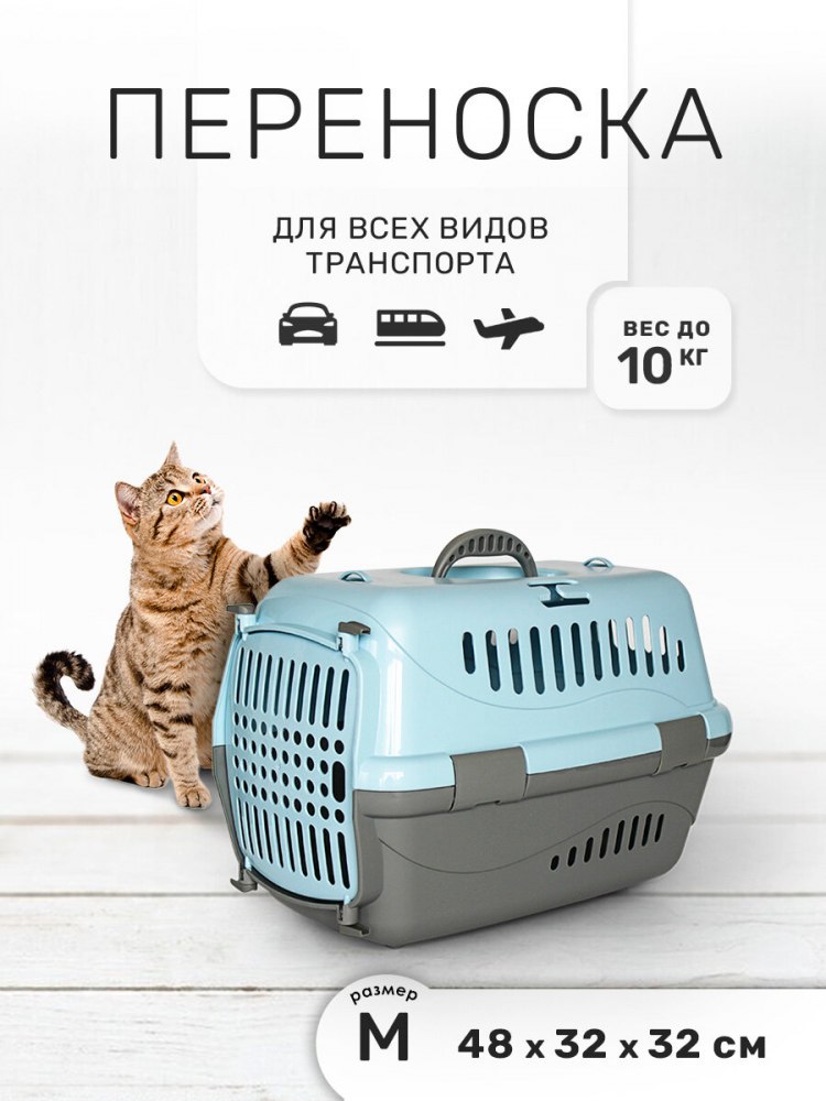 Переноска Турне M с прозрачной пласт. дверцей голубая, 48*32*32 до 10 кг